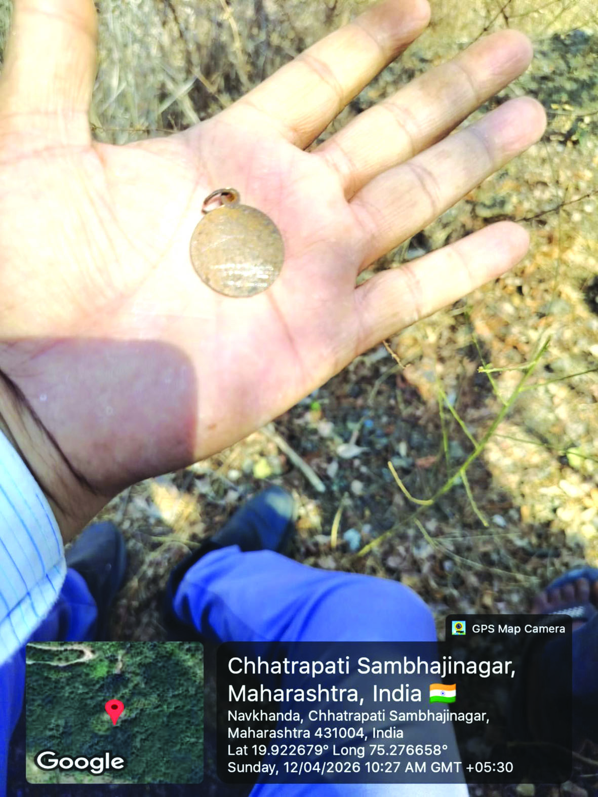 छत्रपती संभाजीनगर, (सांजवार्ता ब्युरो) : मिटमिटा गावच्या उत्तरेस असलेल्या खबुतरी डोंगर रांगेत डोंगर भ्रमंती करत असताना डोंगर रांगेमध्ये तीस फूट खोल असलेली घळी दिसून आली व त्या ठिकाणी एक लोखंडी नाणेही सापडले.